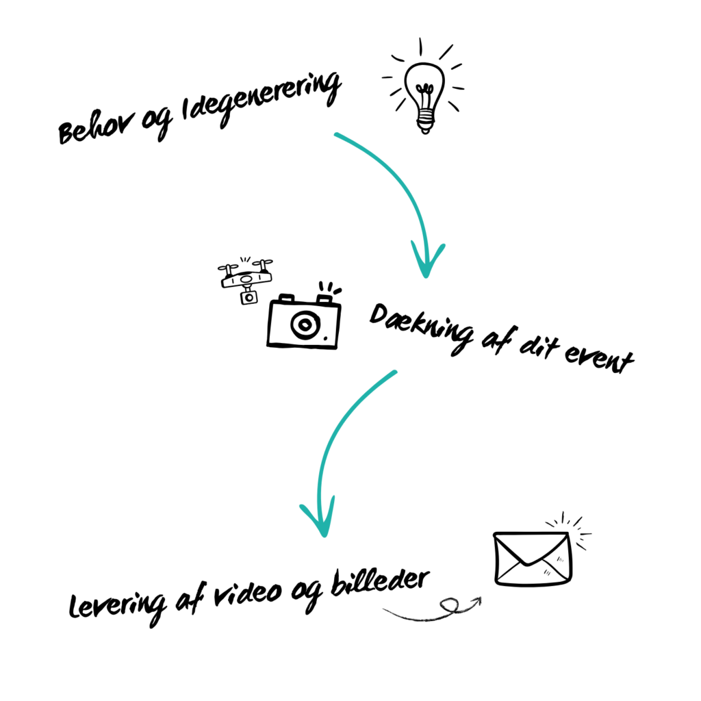 En enkel og effektiv proces, der giver dig ro til at fokusere på dit event, mens vi sørger for det visuelle indhold.